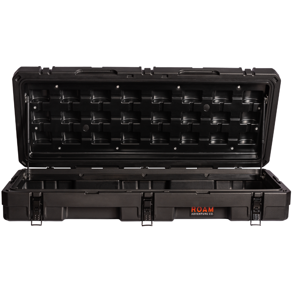 The ROAM 83L Rugged Case is a heavy-duty storage case that comes in 4 color options and is ideal for storing your long items such as chairs, shovels, axles, recovery gear or just adding more storage to any vehicle. Rugged low-profile storage that seamlessly mounts the roof of any vehicle. This premium case features a durable LLDPE shell, our proprietary Lid-Lift mechanisms, steel lockable latches, and a dust/water resistant gasket seal that makes sure your gear always stays protected no matter the weather or terrain. The threaded inserts in the lid give you the ability to add a lid organizer or molle panel to take your organization to the next level. Having an interlocking design makes stacking and pairing simple no matter the amount of gear you carry.