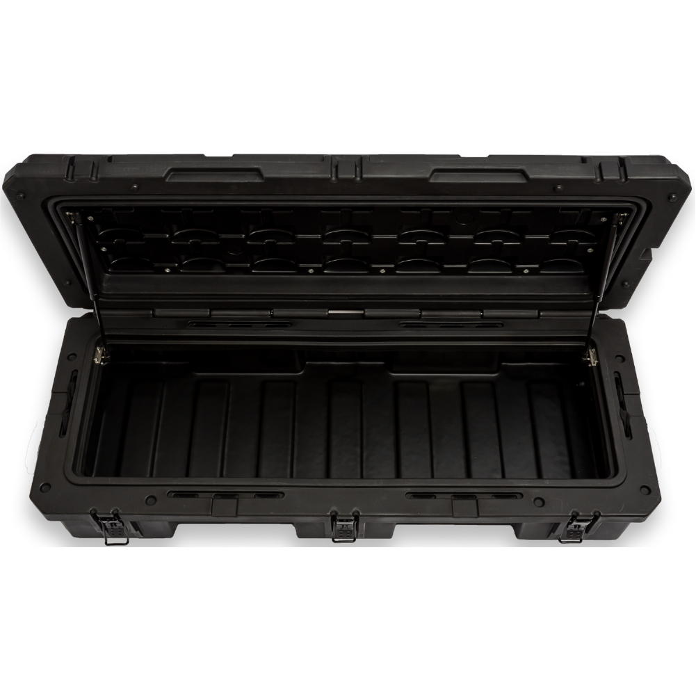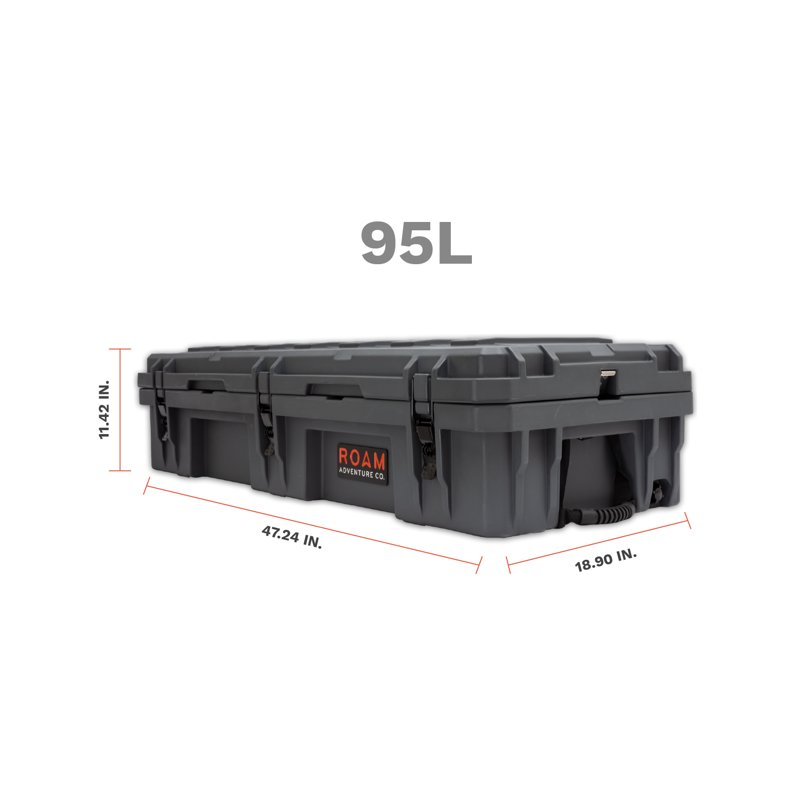 The ROAM 95L Rugged Case is a heavy-duty storage case that comes in 4 color options and is ideal for storing your long items such as chairs, shovels, axles, recovery gear or just adding more storage to any vehicle. Rugged storage that seamlessly mounts the roof of any vehicle. This premium case features a durable LLDPE shell, our proprietary Lid-Lifts, Nylon rope handles, steel lockable latches, and a dust/water resistant gasket seal that makes sure your gear always stays protected no matter the weather or terrain. The threaded inserts in the lid give you the ability to add a lid organizer or molle panel to take your organization to the next level. Having an interlocking design makes stacking and pairing simple no matter the amount of gear you carry.