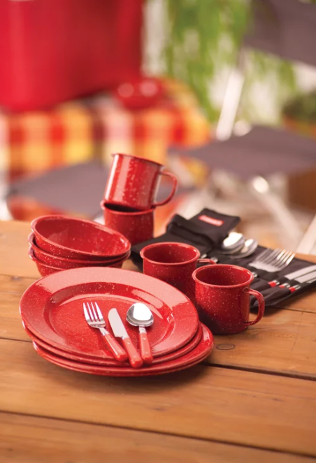 Coleman 24-Piece Speckled Enamelware Cook Set - Red