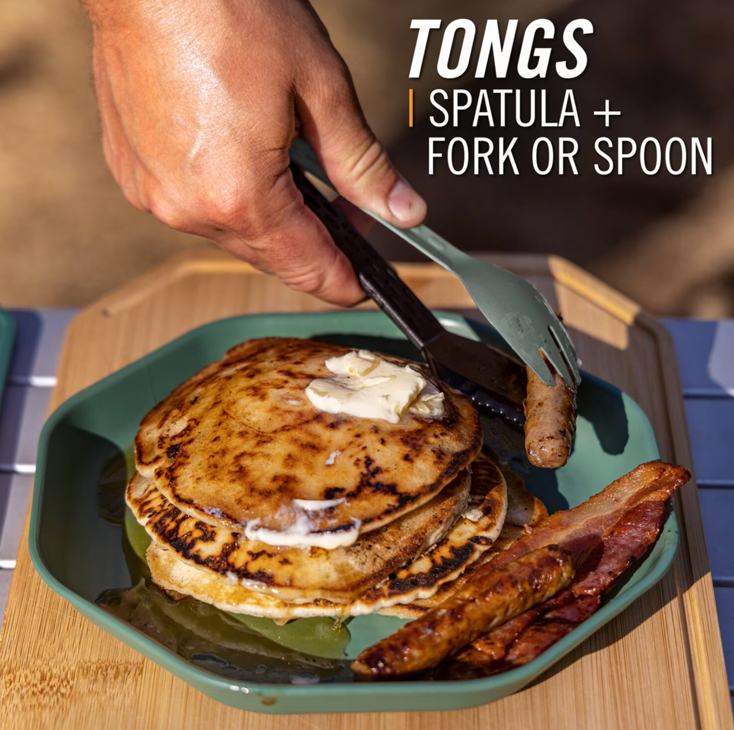 On the trail, the most important meal of the day is the one you're about to eat. Gerber's ComplEAT tool has the bases covered with a fork, spoon, spatula, and 4 function multi-tool that nest for transport as well as snap together to convert into functional tongs. Cook, eat, clean and get back out there.