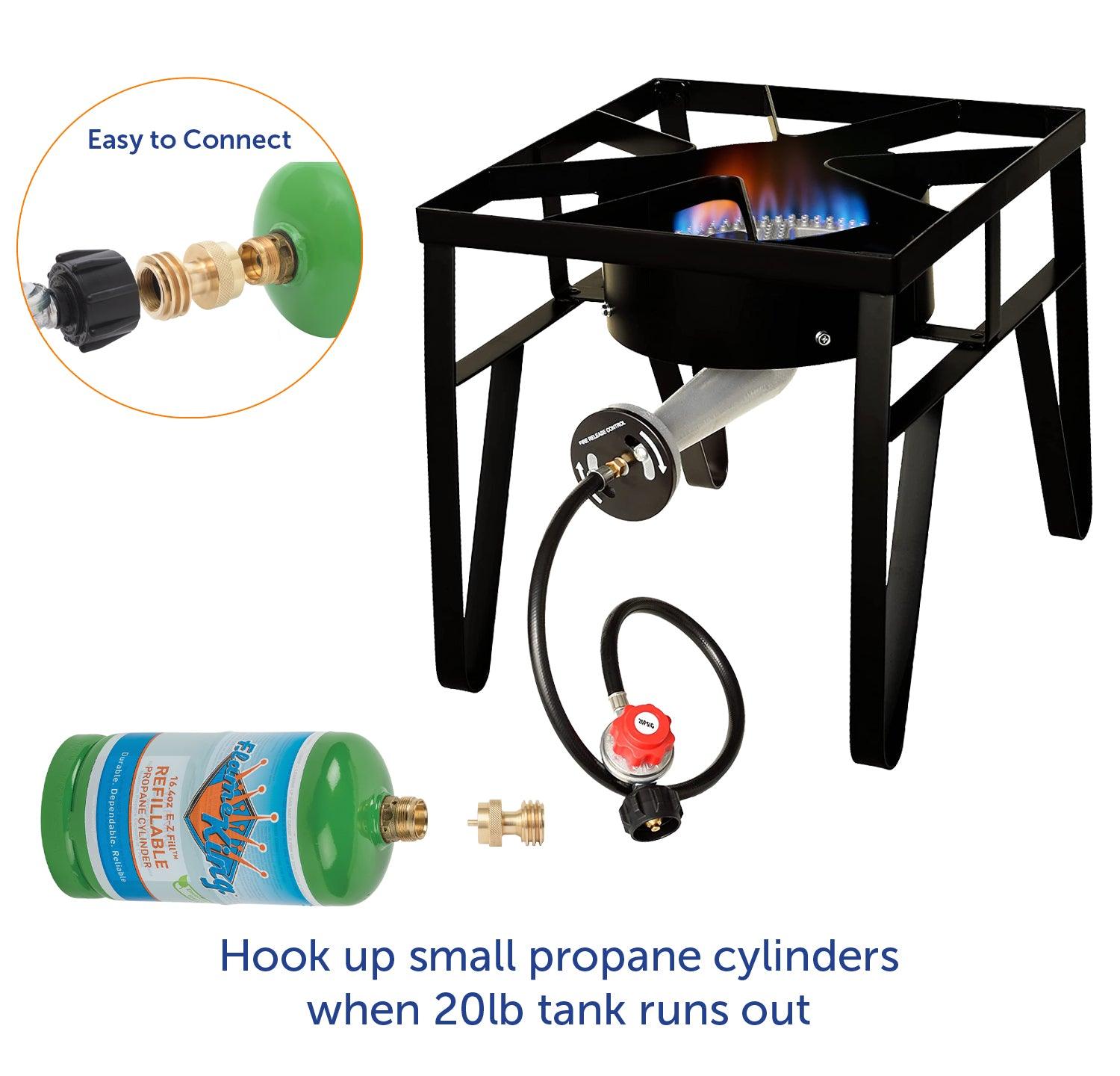 Small enough to fit in your camping kit, RV drawer, or grill toolbox, this adapter is a must-have accessory for backyard BBQs, tailgating, and off-grid adventures. Simply screw it on, connect your smaller cylinder, and you're ready to cook - no tools required.
