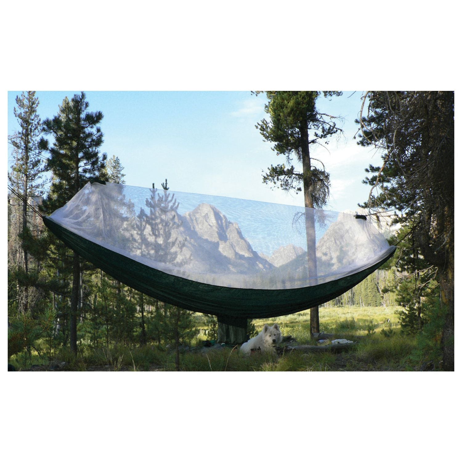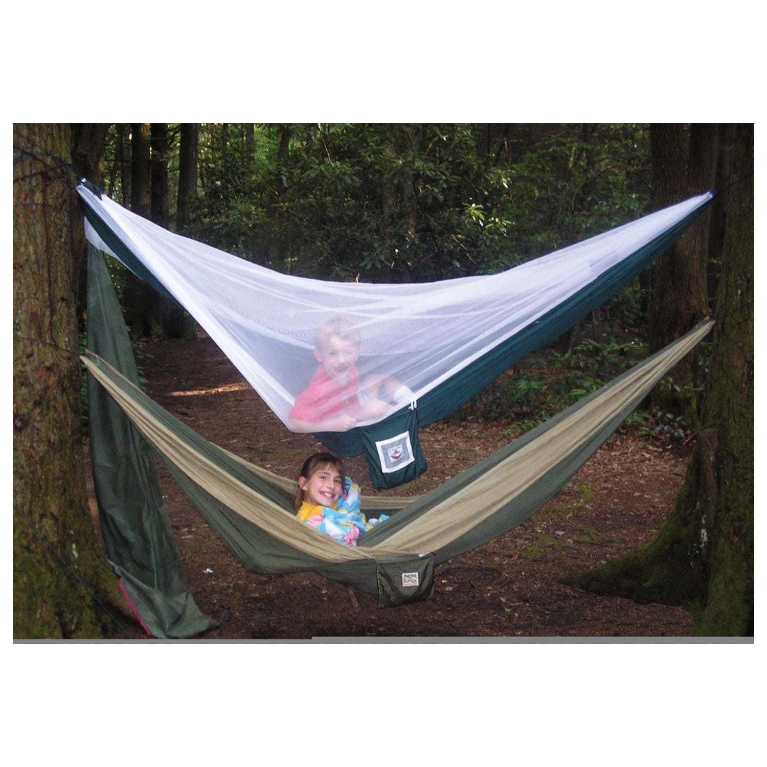 Mosquito Free Hammock Bliss combines high quality materials with exceptional comfort to create the ultimate pest free hammock experience. This incredible hammock has so much room it is larger than a double size bed. The white mosquito netting is constructed of quality nylon and is attached to the entire length of the hammock. We have provided inside and outside double YKK zippers to make it a snap to zip yourself into and out of your bug free zone. This hammock is also completely reversible so when bugs are not a problem just flip it over. Attach our All Purpose Waterproof Shelter above this hammock for a complete mosquito proof and rain proof sleeping system.