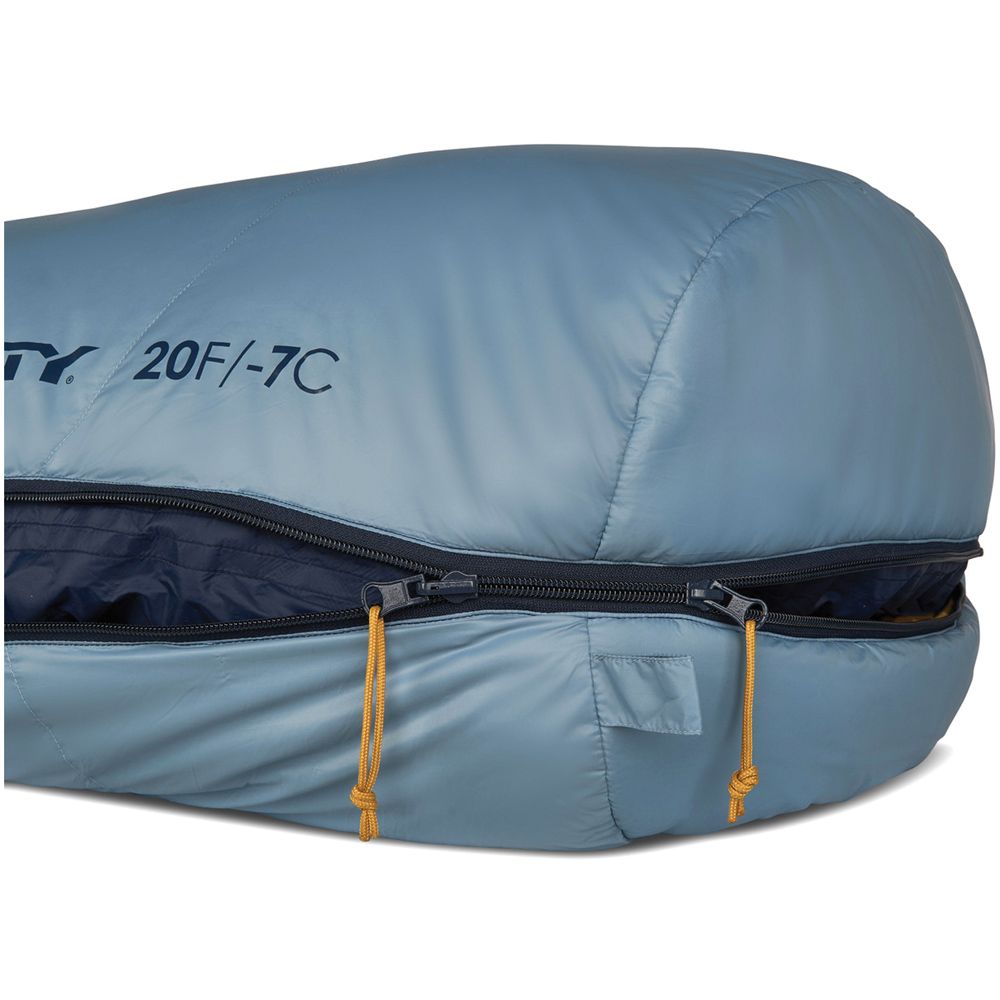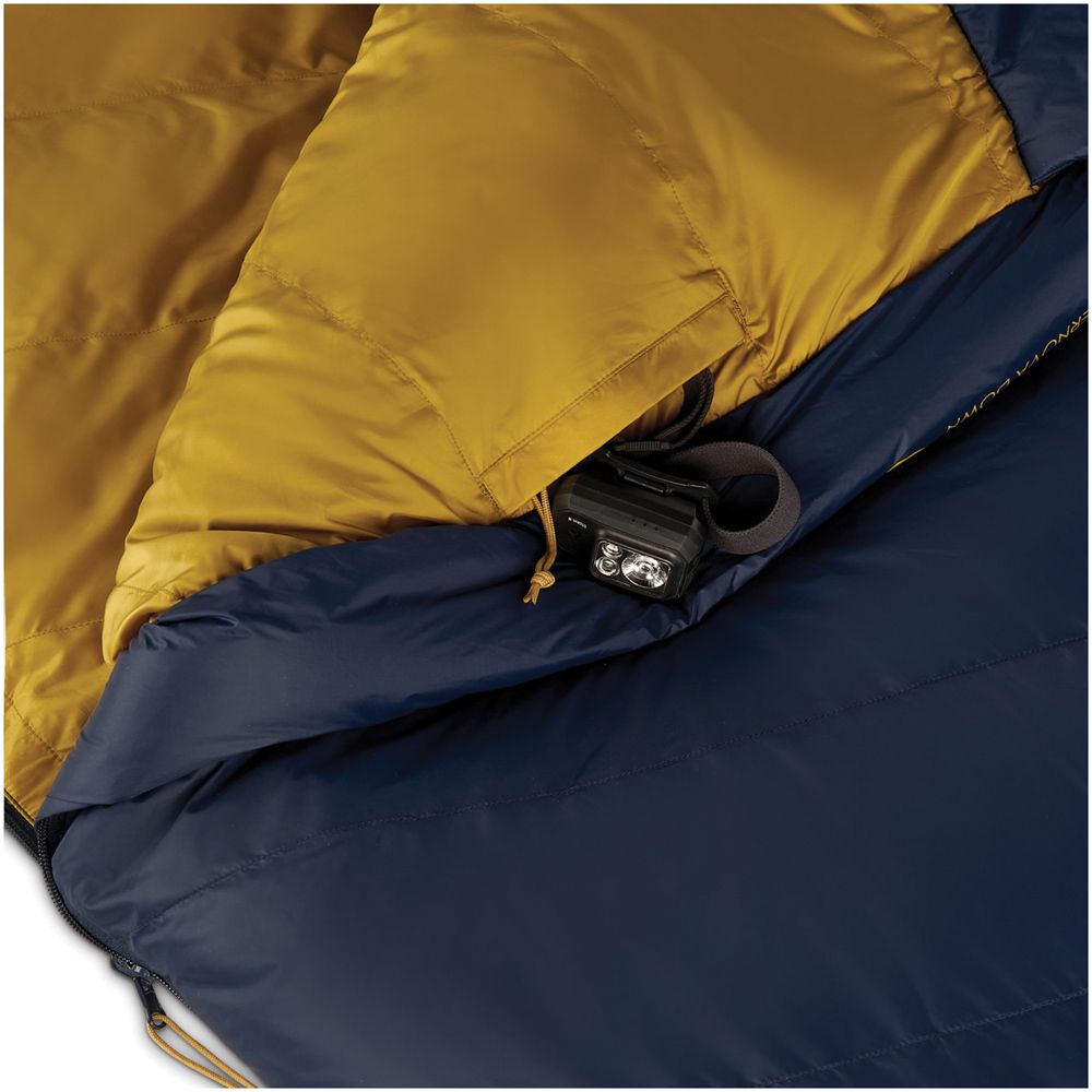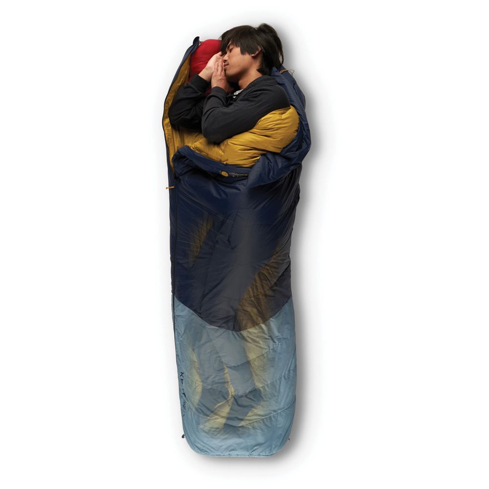 You'll find our Supernova down sleeping bag at both the backyard campout and the backcountry adventure - offering all the compact, lightweight warmth of our popular Cosmic Down, in a roomy shape that accommodates a wide range of body types and sleep positions! Lofty baffles and buttery-soft, recycled fabrics keep you cozy and comfy on colder nights, while an anti-snag zipper design with locking sliders enables you to let off steam when things heat up. Curl up next to the campfire with it opened like a blanket, or zip together with another Supernova to create a cozy double bag. The Supernova really does do it all!