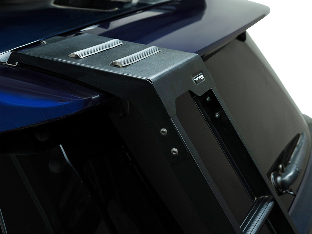 This ladder fastened over the top of the tail gate and drilled at the bottom. The ladder has 5 steps. Length from the bottom step to the top step is 1100mm / 43.3'' Made with off-road tough black powder-coated high-strength steel and aluminum for maximum durability and strength. Fitment guide and installation hardware included.