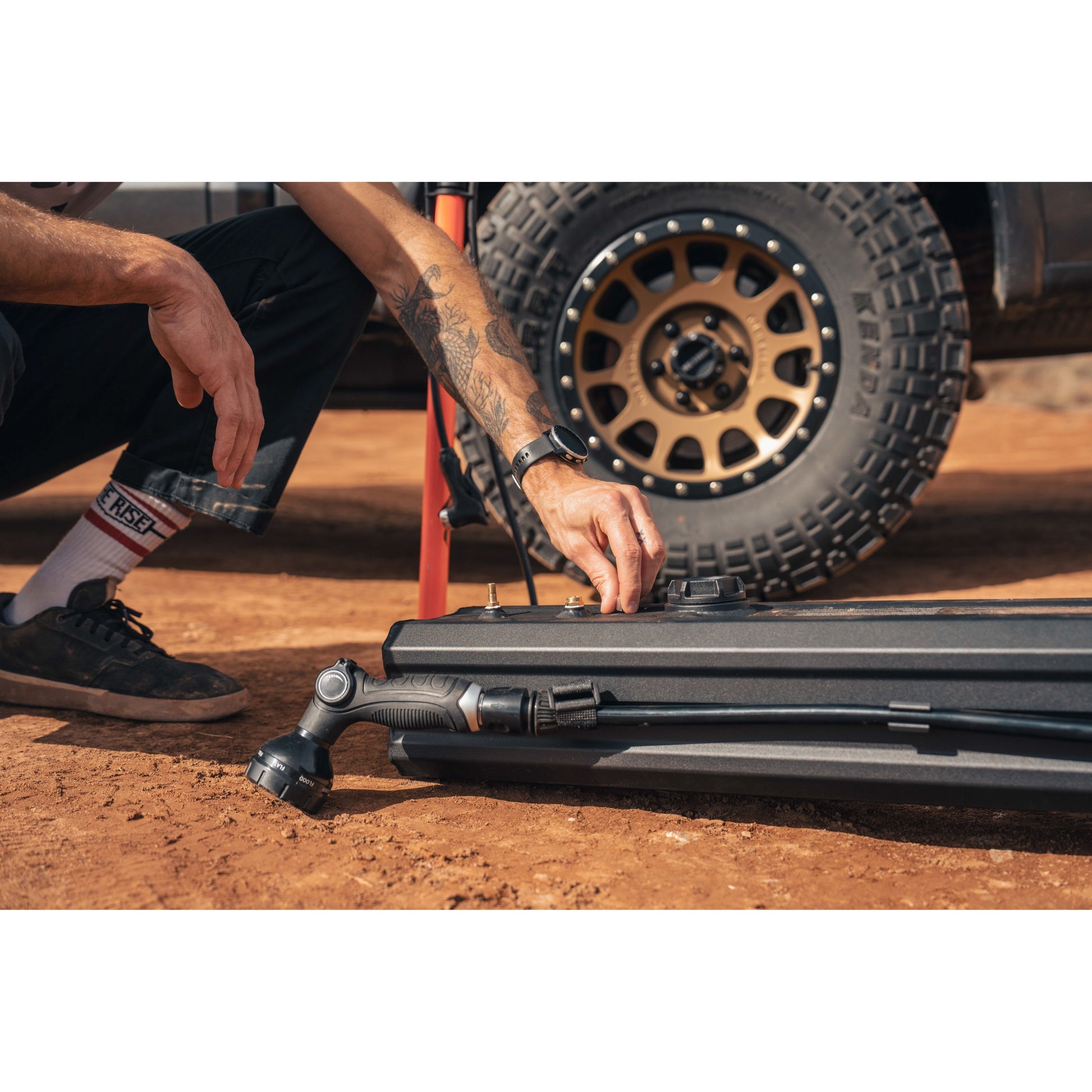 Whether you need to rinse off your sandy feet, spray the mud off your bike, or take a shower on your extended camping trip, the 7-gallon & 5-gallon Water Tank is the perfect system for water storage. It has an aluminum body that helps heat up the water in the summer heat and comes with an included hose, shower nozzle, and mounting hardware. The hardware on the tank is all stainless steel and made to last. *Water tank is not advised to be used as a potable water source*